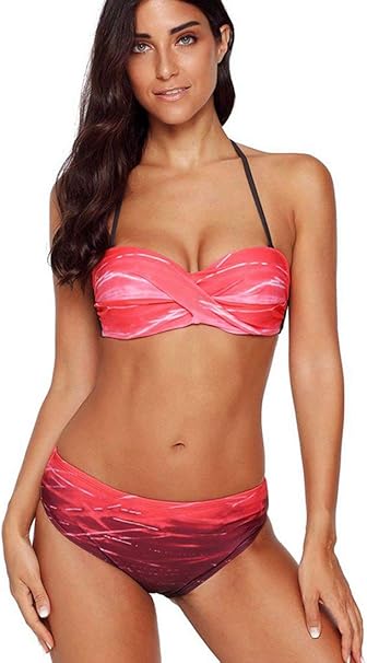 Samgu Roter Farbverlauf Print Halfter Bandeau Bikinis Fur Damen Push Up Amazon De Bekleidung