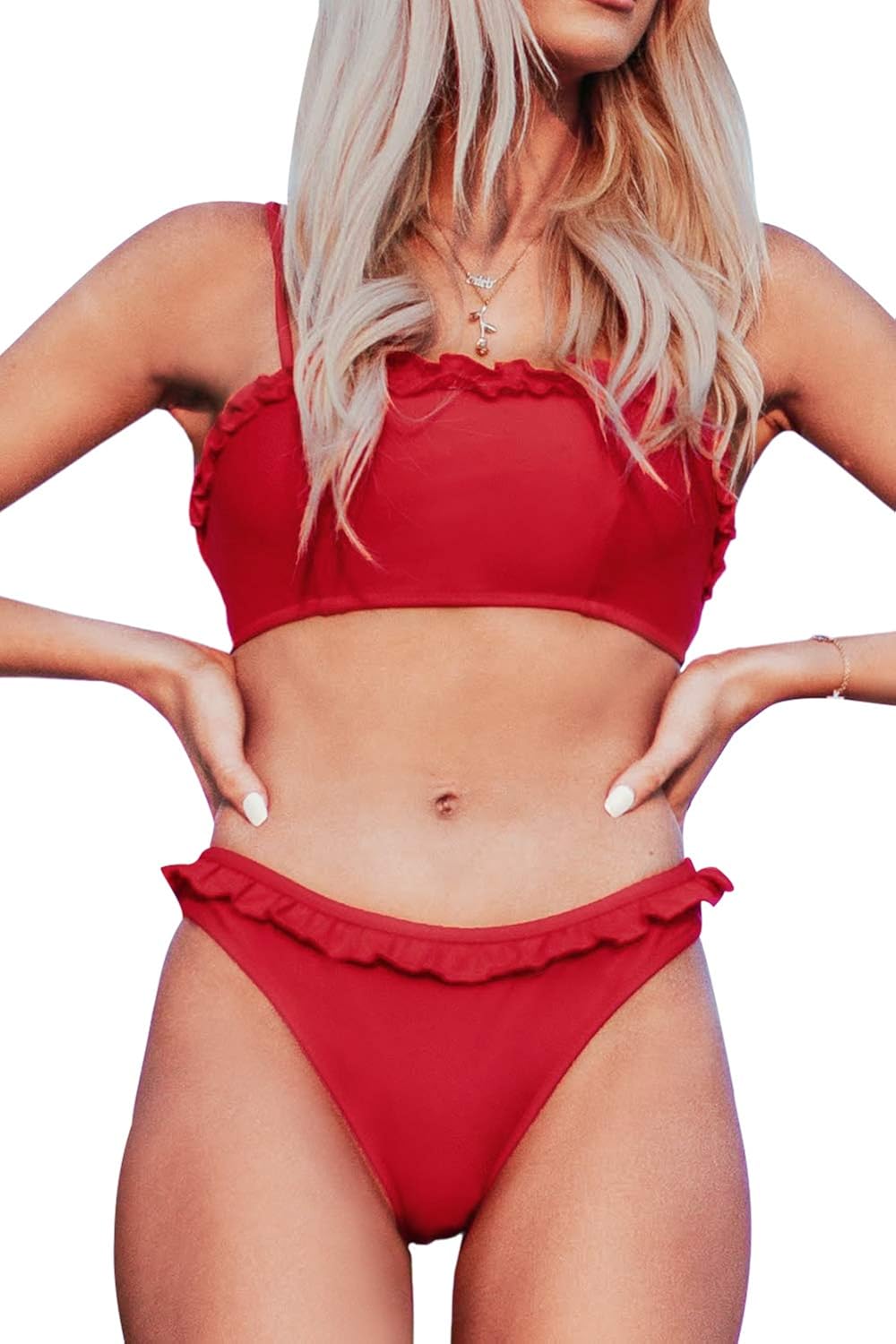 Cupshe Roter Gekrauselter Bandeau Bikini Set S Amazon De Bekleidung