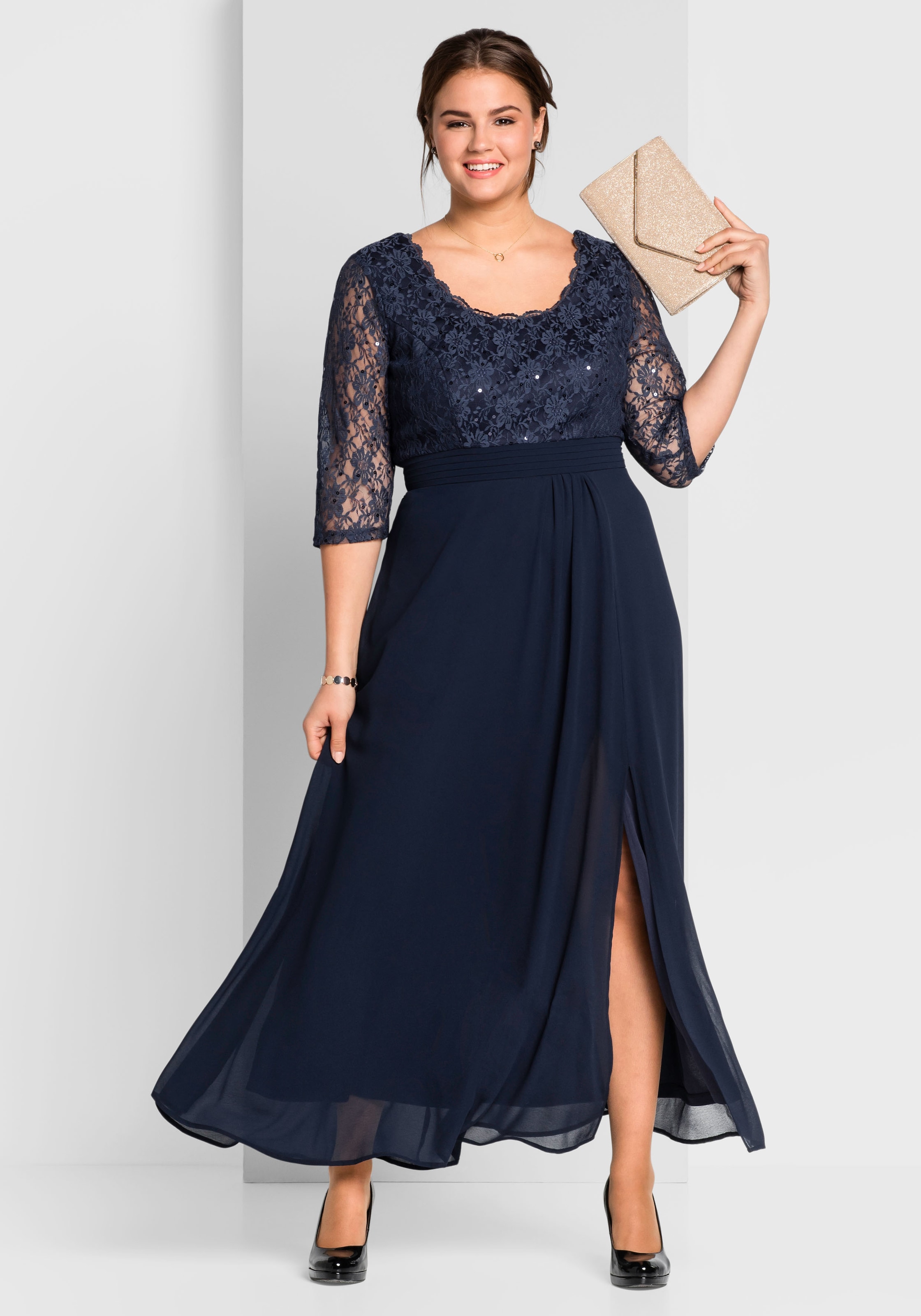 Zizzi Abendkleid Damen Grosse Grossen Spitzenkleid 3 4 Arm Spitze Elegant Kleid Online Kaufen Otto