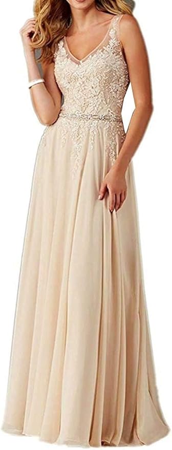 Damen Abendkleider Fur Hochzeit Applikation Chiffon Brautjungfer Kleider Ballkleider A Linie Brautkleid Lang Festkleider Grosse Grossen Amazon De Bekleidung