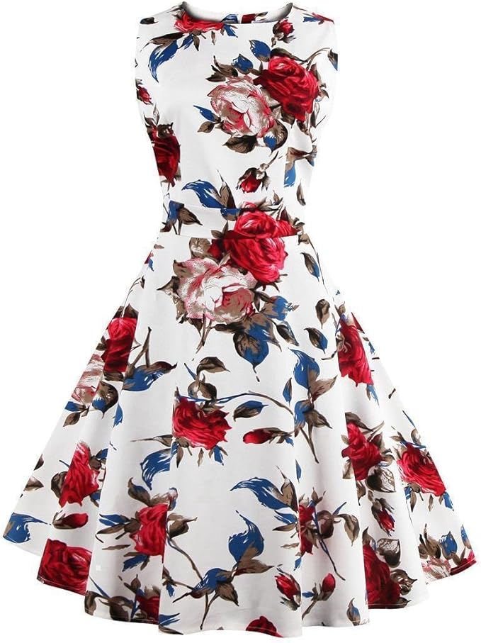 Babyonlinedress Vintage Retro Rockabilly Kleid Armellos Blumenkleid Elegant Swing Cocktailkleider Festkleider S Weiss Geblumt Amazon De Bekleidung