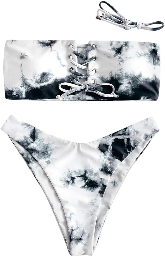 Zaful Badeanzuge Fur Frauen Abnehmbare Trager Schnurung Gewellt Hohes Bein Bandeau Bikini Set Neckholder Badeanzuge Amazon De Bekleidung