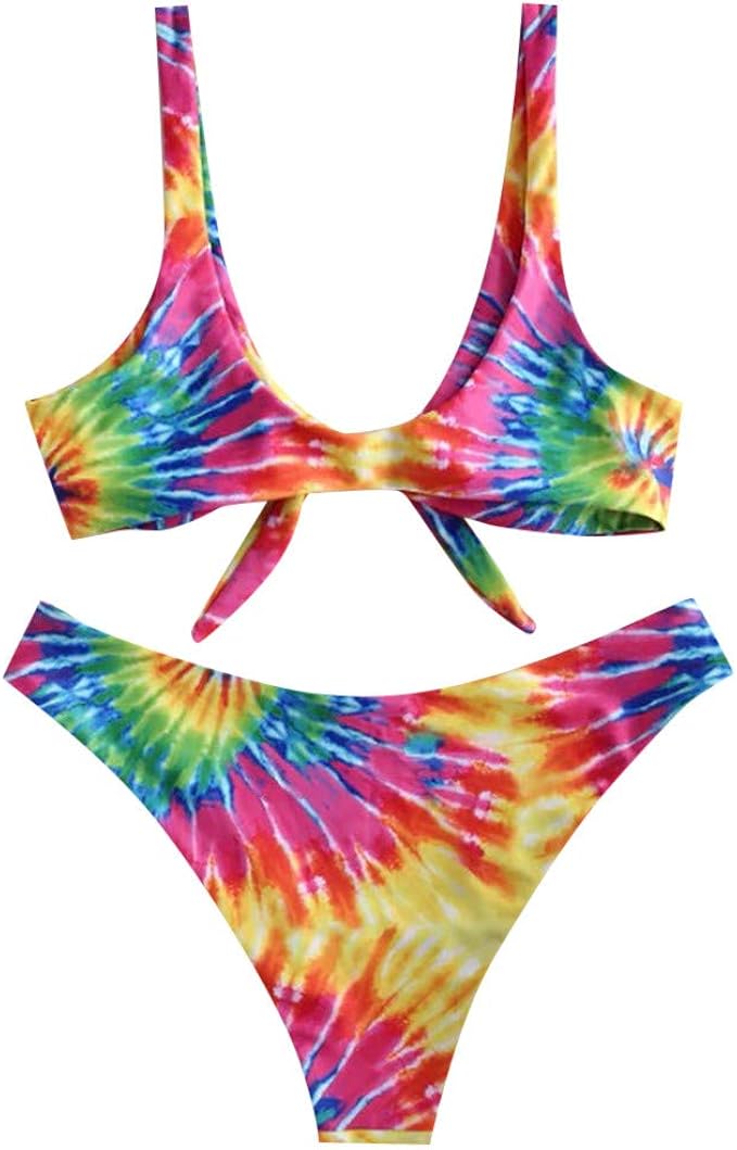 Bolanq Vetements Sexy Tie Dye Schnurschuhe Fur Frauen Mit Hoch Geschnittenem Neckholder Bikini Set Zweiteiliger Badeanzug Amazon De Bekleidung