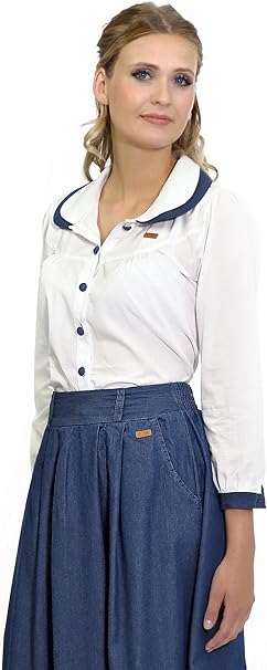 Kustenluder Damen Oberteil Melina Bubikragen Vintage Bluse Amazon De Bekleidung
