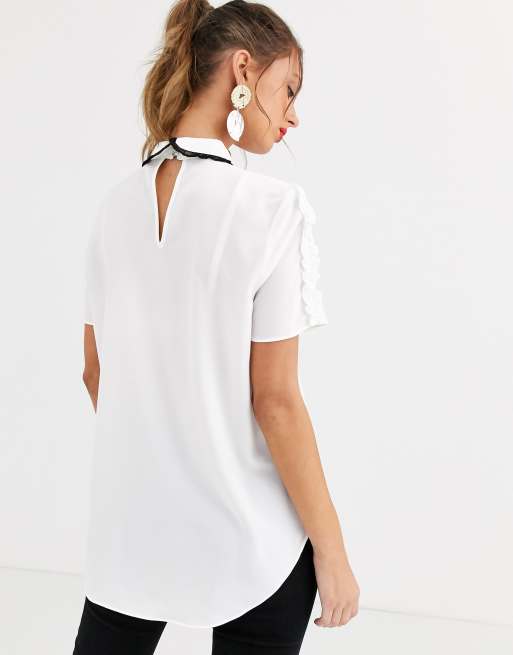 River Island Weisse Bluse Mit Bubikragen Und Kontrastierender Schnurung Asos