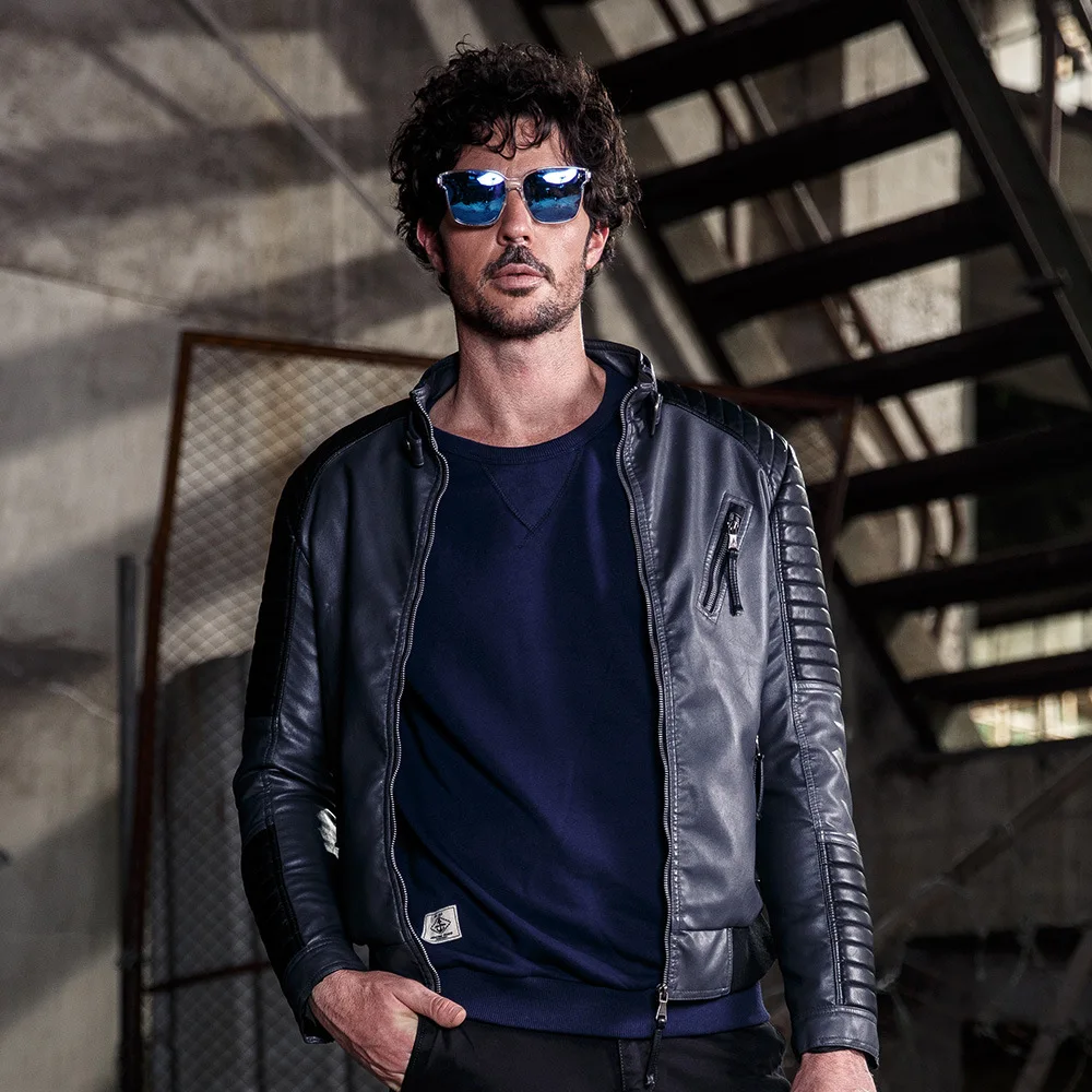 Herren Lederjacke Mit Stehkragen Modell Emiliany