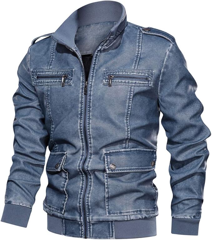 Allthemen Herren Lederjacke Mit Stehkragen Bomberjacke Winter Gefuttert Winterjacke Warm Ubergangsjacke Amazon De Bekleidung