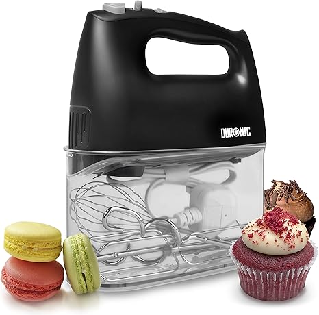 Amazon De Duronic Hm4 Bk Elektrischer Handmixer 400 Watt Aufbewahrungsbox Turbofunktion Edelstahl 2 Ruhrbesen 2 Knethaken Schneebesen Mixer Handruhrer Ideal Fur Kuchen Schnee Schlag