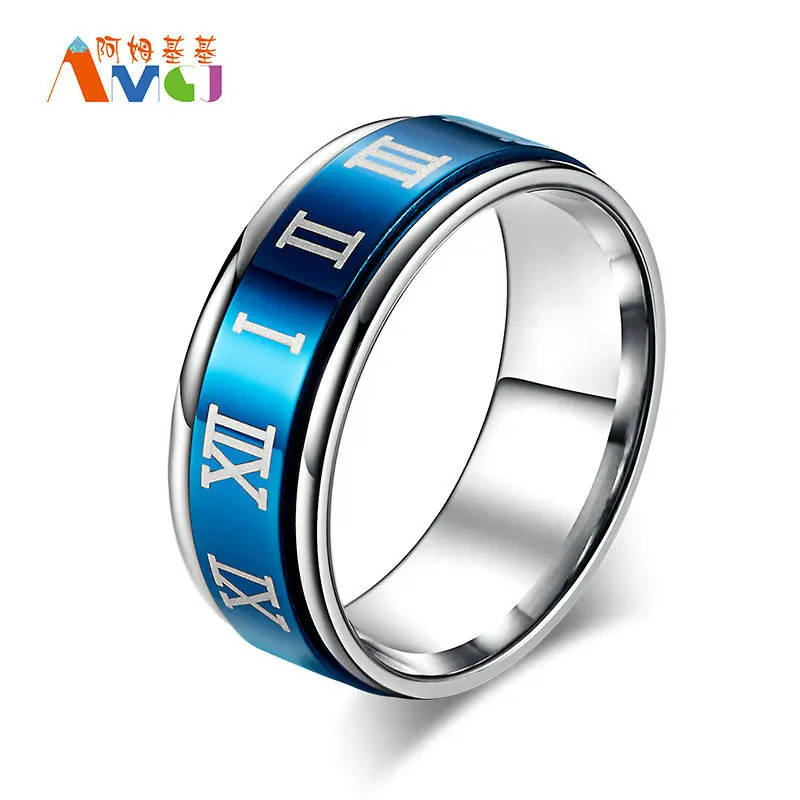 Amgjek 8mm Klassische Blau Schwarz Romische Zahl Ring Spinner Titan Stahl Manner Mannlich Hochzeitstag Schmuck Freund Uns Grosse Roman Number Ring Number Ringtitanium Steel Aliexpress