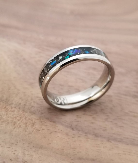 Blau Opal Meteorit Ring Titan Eheringe Opal Ehering Etsy