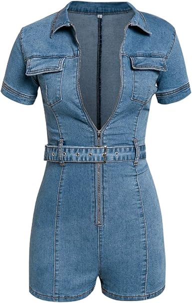 Amazon Com Anewsex Zipper Denim Jumpsuit Short Women Rompers Pocket Bodycon Jeans Overalls Party Club Combishort Clothing