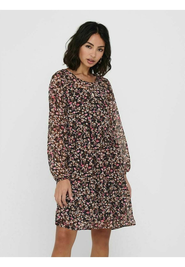 C A Damen Sommerkleid Urlaub Strand Ausgestellt Bindeband Bunt Koralle Schwarz Grosse 44 Amazon De Bekleidung