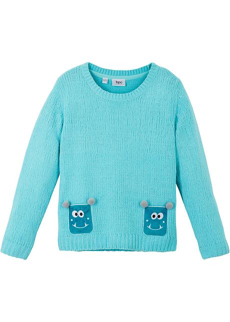 Weicher Strickpullover Mit Aufgesetzten Taschen Aqua