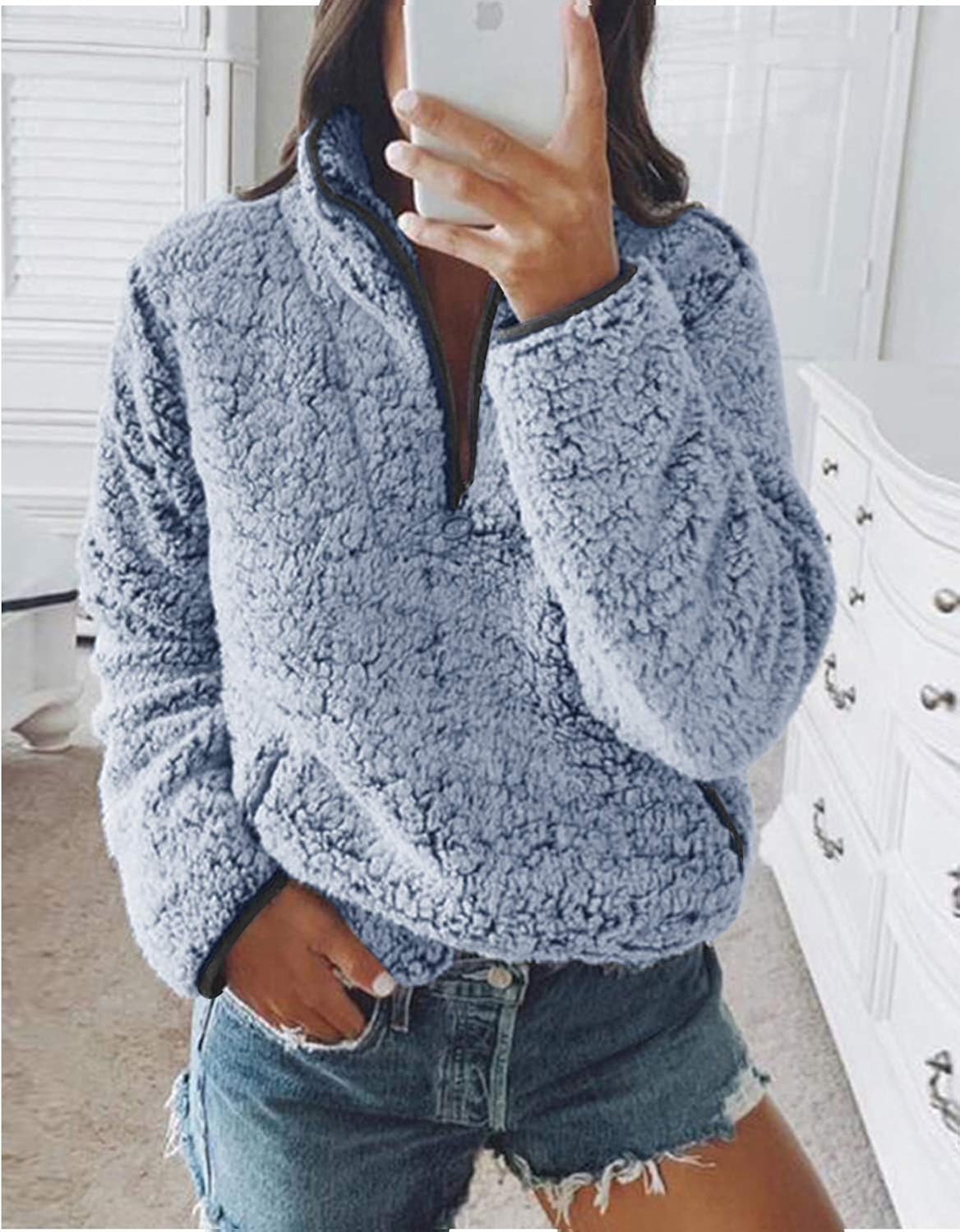 Pullover Strickjacken Yidarton Pulli Damen Pullover Fleece Madchen Weich Sweatshirt Mit Seitentasche Flauschig Fleece Zip Winter Langarm Oberteile Tops Bekleidung Guiadejericoacoara Com Br