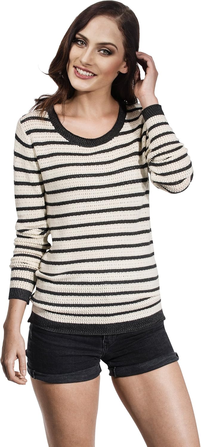 Cheer Rundhals Pulli Weicher Strick Pullover Mit Streifen Muster Schwarz Weiss Ebay