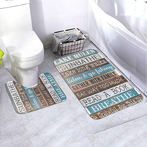 Lake Rules On Wood Signs Comfort Bathroom Rug Mats With Non Slip Backing Set 2 Piece 1 Tub Shower Bath Rug And 1 U Shaped Contour Shower Mat For Bath Room Hotel Amazon Co Uk