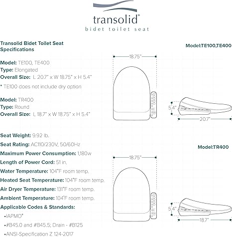 Transolid Te100 Electronic Low Profile Elongated Bidet Seat White Amazon Com