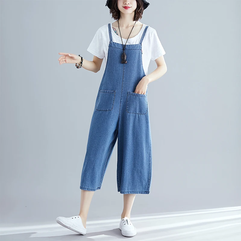 Casual Harajuku Hippie Boho Boyfriend Jeans Denim Pocket Blue Cotton Loose Baggy Wide Leg Pants Women Summer Overalls Capris Jeans Aliexpress