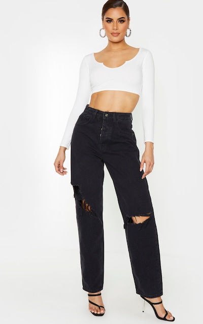 Low Rise Ripped Boyfriend Jeans Prettylittlething Usa