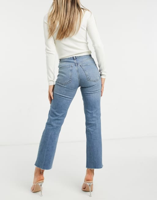 Asos Design Tall Effortless Ausgestellte Jeans Mit Hohem Bund Kurzem Schnitt Und Stretchanteil In Mittlerer Dirty Waschung Asos