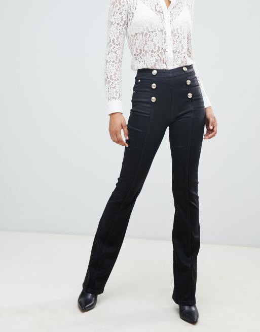 Morgan Ausgestellte Jeans Mit Hohem Bund Und Knopfen In Schwarz Asos