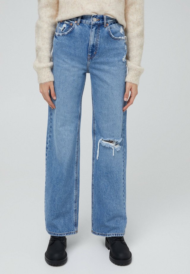 5PocketJeans aus gewaschenem Baumwolldenim Modell mit hohem Bund und geradem, weitem Bein Reißverschluss und Knopf vorn Die Baumwolle ist teilweise rec. Nur für kurze Zeit, nur online bis zu 60 % auf Mäntel, Hoodies, Tees und mehr!. Ausgestellte SkinnyJeans mit hohem Bund für DAMEN KOLLEKTION Denim auf Massimo Dutti für Herbst Winter für 5995 Natürliche Eleganz!.