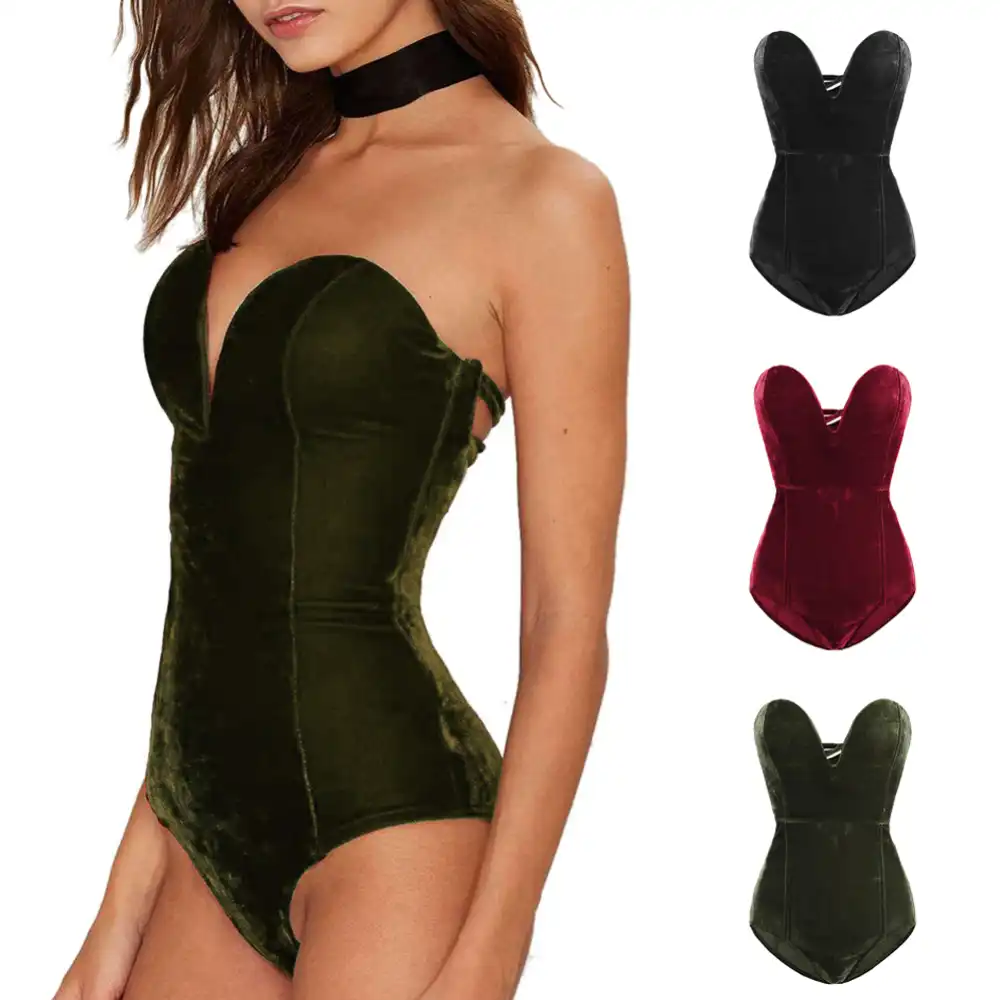 Herbst Winter Sexy Samt Bodys Frauen Zuruck Kreuz Liebsten Solide V Neck Korper Feminino Schwarz Bodycon Overall Body Strampelanzuge Aliexpress
