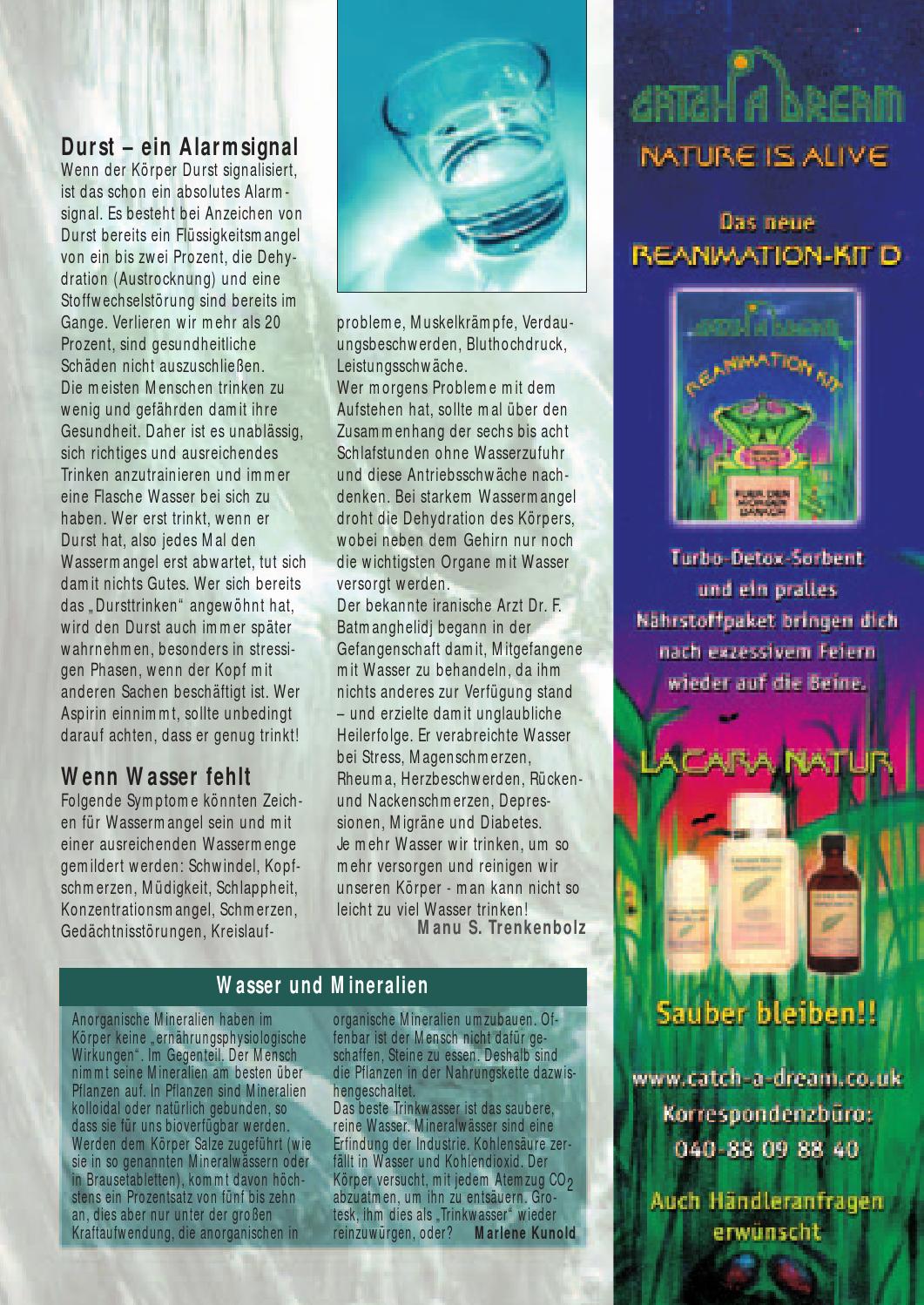 Der menschliche Körper besteht mehr als zur Hälfte aus Wasser Wenn wir mehr Wasser verlieren als wir trinken, besteht die Gefahr der Dehydration Aber wie können wir feststellen, ob wir dehydriert sind und wie kann Dehydration am besten vermieden werden?. Lebens entwickeln Wenn der Körper eines Menschen immer mehr an Wassermangel leidet, verdickt sich sein oder ihr Blut immer weiter Kräutertee Heißer Kräutertee ist nicht wasserspendend, aber er dehydriert auch nicht wie andere Getränke es vermögen und dennoch hat er dem Körper viele heilende Eigenschaften zu bieten Tee kann. Wassermangel kann verheerende Folgen für unseren Körper haben Als Faustregel gilt Pro Kilogramm Körpergewicht benötigen wir 30 ml Wasser am Denn das entspricht ziemlich genau der Menge, die wir täglich ausscheiden – über den Atem, als Schweiß, als Stoffwechselprodukt.