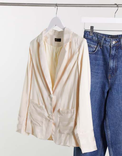 I Saw It First Satinblazer Mit Streifen Und Schulterpolstern In Weiss Evesham Nj