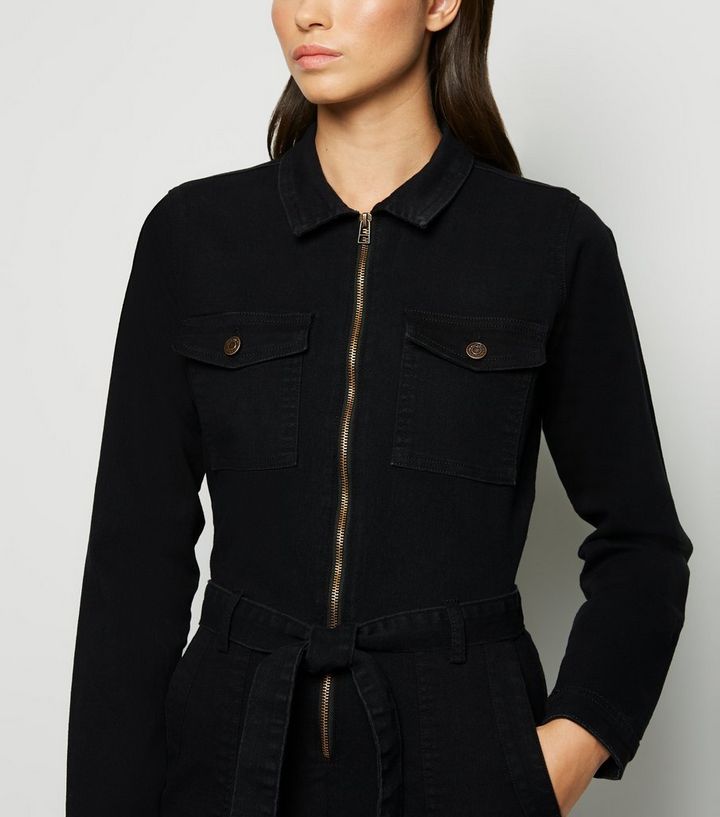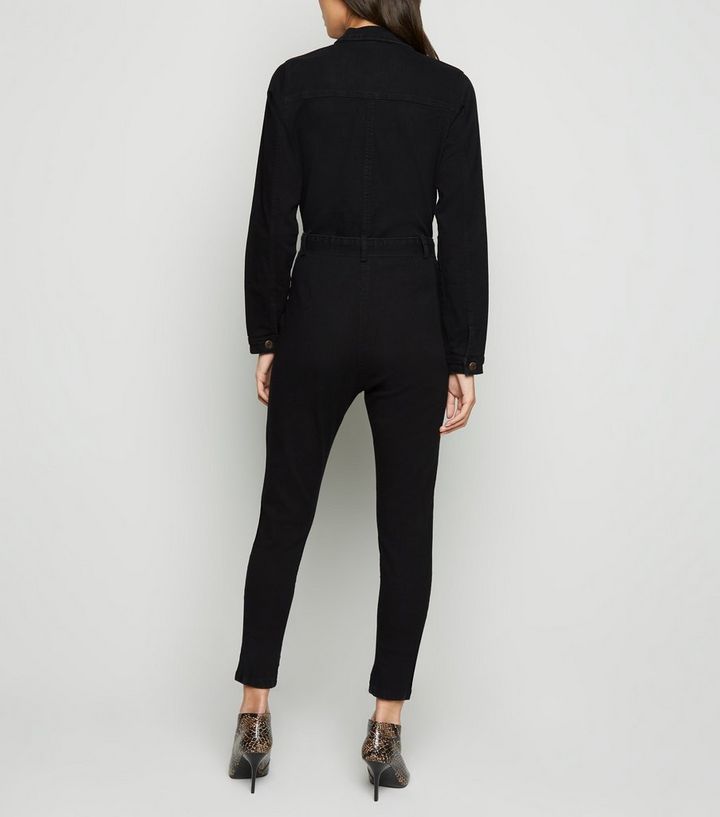 Schwarzer Langarmliger Jumpsuit Aus Denim New Look