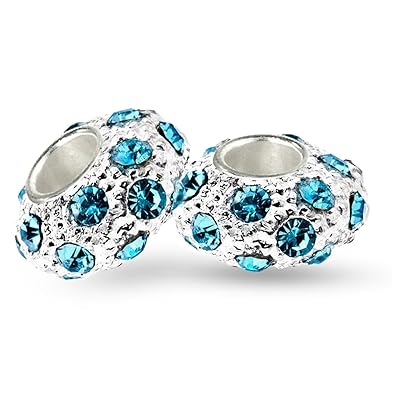 Sterling Silber 2 Perlen Marz Geburtsstein Und Sternzeichen Fische Aquamarin Blaue Pave Fassung Facettierte Kristallene Europaische Bettel Perlen Passt Zu Armbandern Anhangern Halsketten Amazon De Schmuck