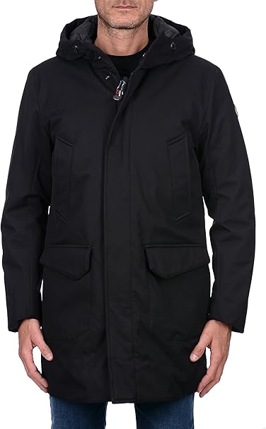 Colmar Herren Mantel 1290 Farbe Schwarz Herbst Winter Lange Daunen Jacke Mit Fester Kapuze Made In Italy Amazon De Bekleidung