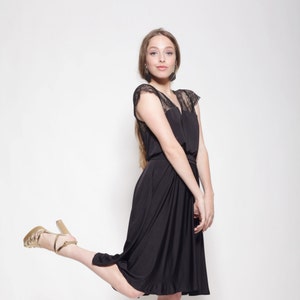 Brautjungfern Schwarzen Kleid Knielang Spitze Oben Und An Den Etsy
