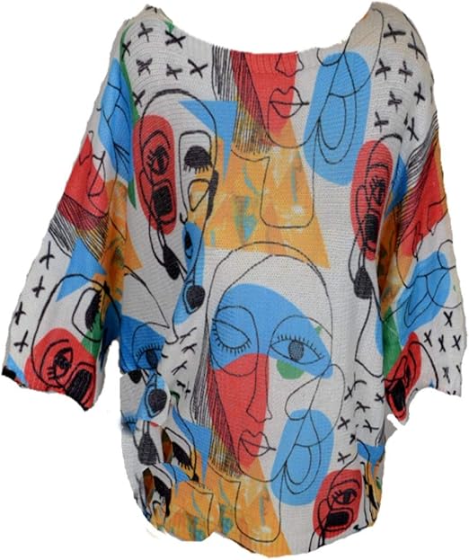Damen Motiv Shirt Tunika Bluse 34 36 38 40 42 Xs S M L Pullover Top Abstrakt Gesichter Print Sommer Party Amazon De Bekleidung