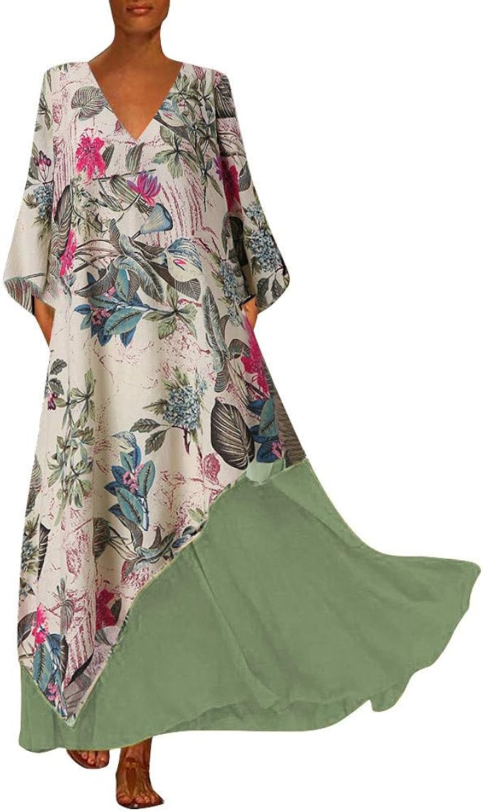 Kanpola Leinen Sommerkleid Damen Lang Zweiteiliges Set Kaftan Strandkleid Grosse Grossen Retro Boho Maxikleid Mit Blumenmuster Oversize T Shirt Kleid Fur Mollige Amazon De Bekleidung