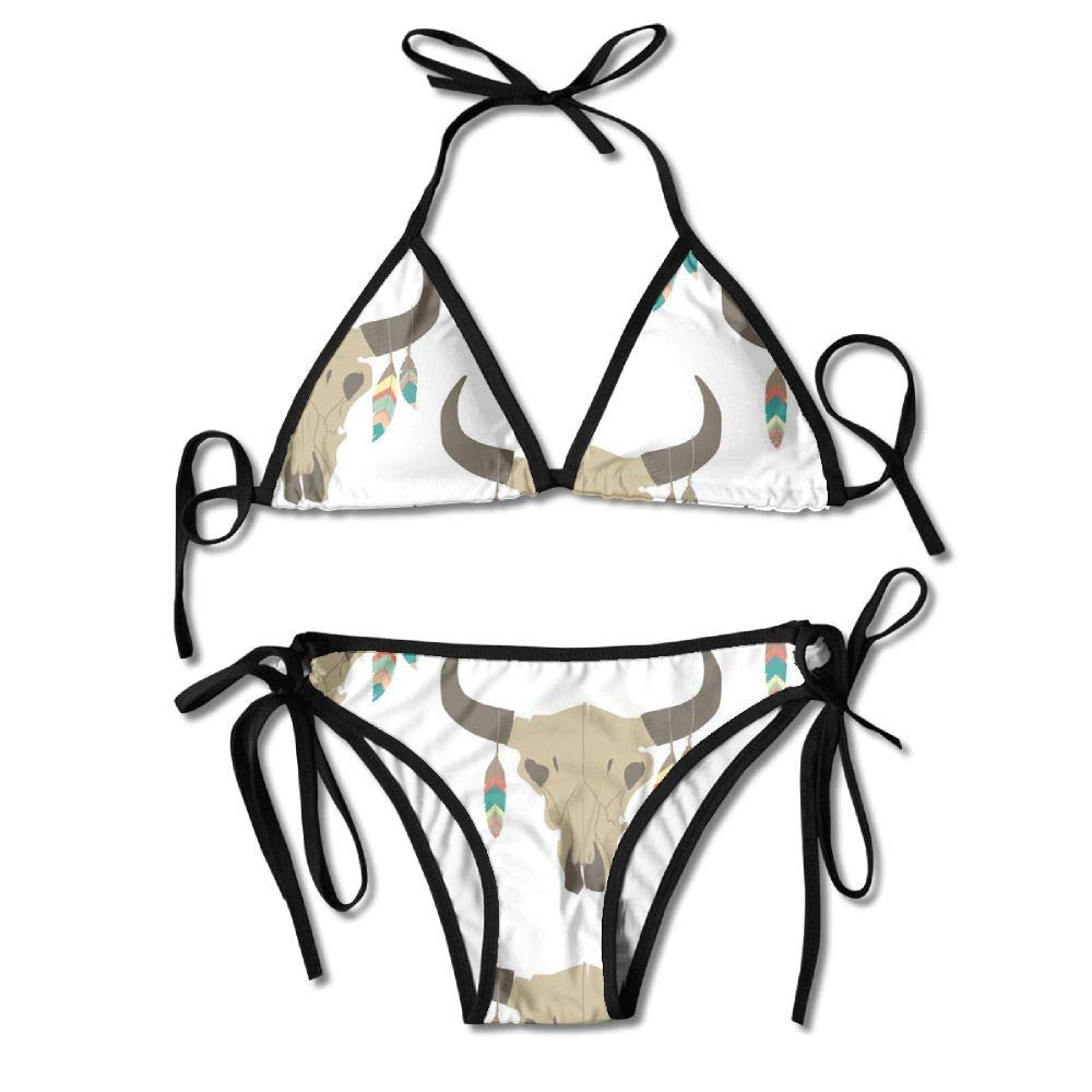 Vidmkeo Women S Tie Side Bottom Triangle Bikini Swimsuits For Cow Skull With Feathers Flower Print Black Ljzpinqw Dauerhafter Service Yala Com Sa