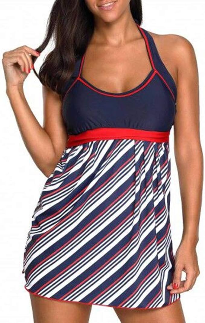 Vawal Frauen Bugel Tummy Control Schwimmen Kleid Tankini Patchwork Ubergrosse Padded Top Bottom Zweiteiliger Badeanzug Amazon De Bekleidung