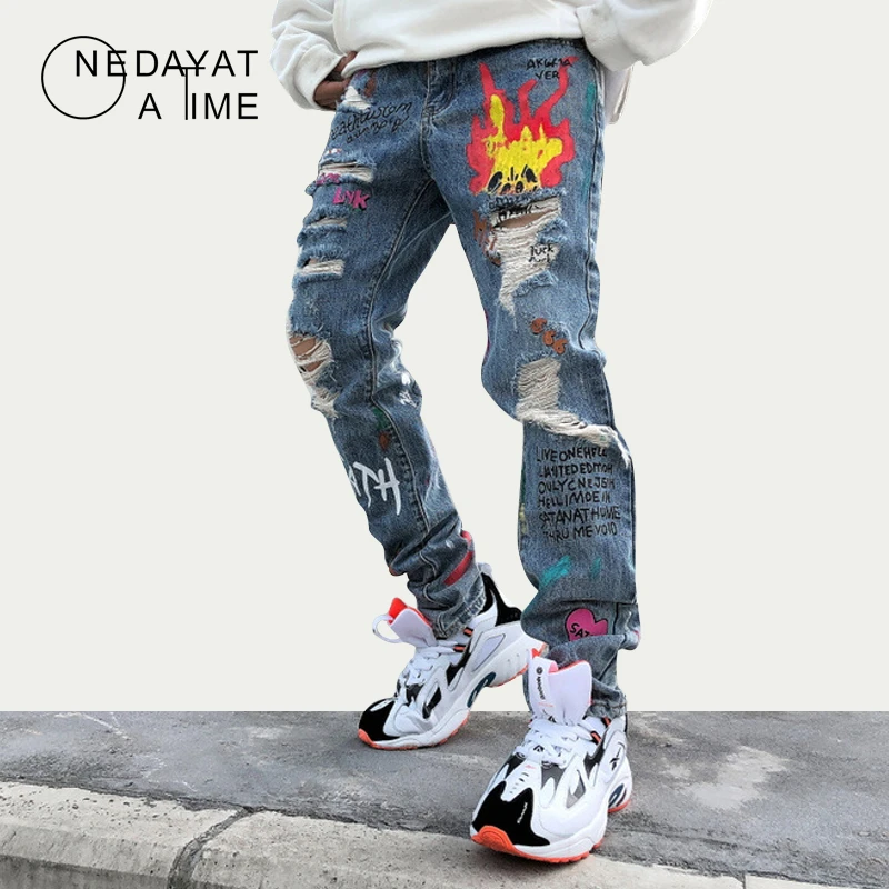 Mens Skinny Jeans Men Non Ripped Stretch Denim Pants Destroyed Ripped Jeans Homme Hip Hop Graffiti Print Denim Jeans Streetwear Jeans Aliexpress