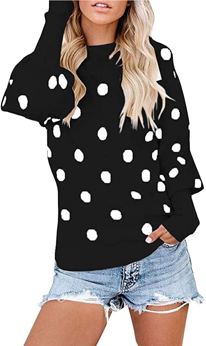 Auiyut Damen Langarmshirts Pullover Sweatshirt Elegant Rundhals Ausschnitt Dot Druck Langarm Pullover Tops Lose Sweatshirt Oberteil Tops Hemd Amazon De Bekleidung