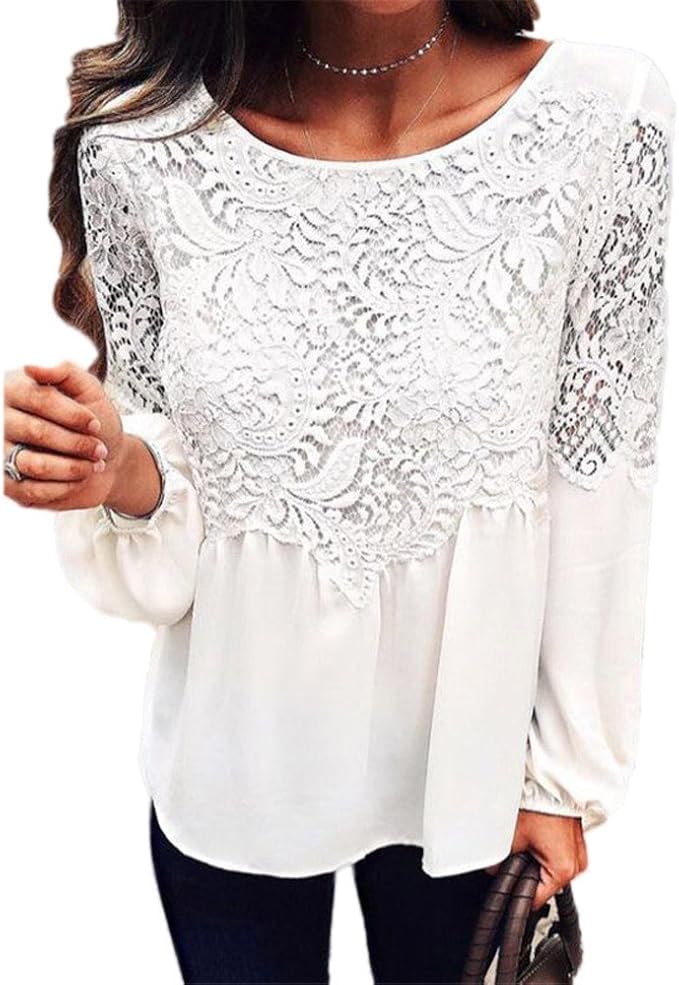 Osyard Damen Oberseiten T Shirt Pullover Sweatshirt Frauen Casual Hemd Kleidung Pulli Tunika Langarm Rundhals Strickpullover Spitze Chiffon Tops Mode Bluse Laternenhulse Oberteile Amazon De Bekleidung