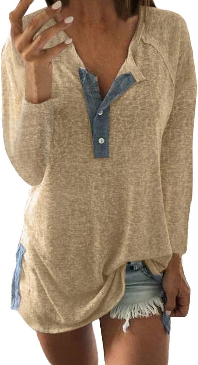 Geili Damen Herbst Casual Langarmshirt Frauen Knopfen Schlitz Pullover Bluse Basic Einfarbige T Shirt Locker Hemd Oberteile Amazon De Bekleidung