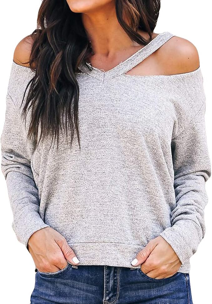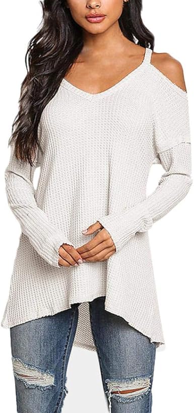 Osyard Damen Oberteile Pullover Sweatshirt Frauen Tops Hemd Tunika Kleidung Outwear Einfarbig T Shirt Langarm Baumwolle Bluse Sexy Schulterfrei Strickpullover Tragerlos Pulli Amazon De Bekleidung