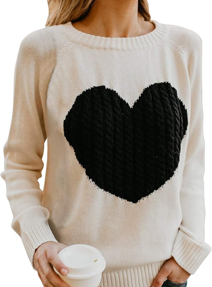 Petalum Damen Pullover Winter Warm Langarmshirt Herz Print Lose Oversize Pullover Druck Rundhals Tshirt Hemd Oberteile Tops Amazon De Bekleidung
