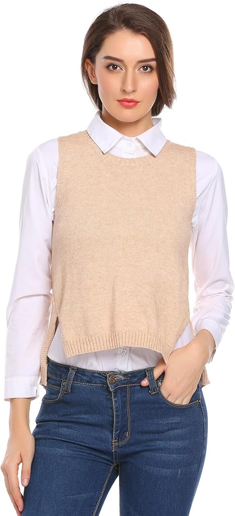 Zeagoo Damen Top Pullover Tank Armlos Oberteil Herbst Shirt Winter Hemd Top Beige Pullover Xl In Grosse 42 Amazon De Bekleidung