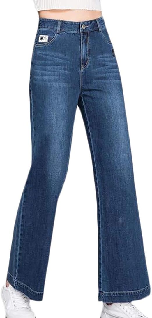 Security Damen Fashion High Rise Jeans Breites Bein Stretch Denim Flare Gr Grosse 50 52 Blau Amazon De Bekleidung