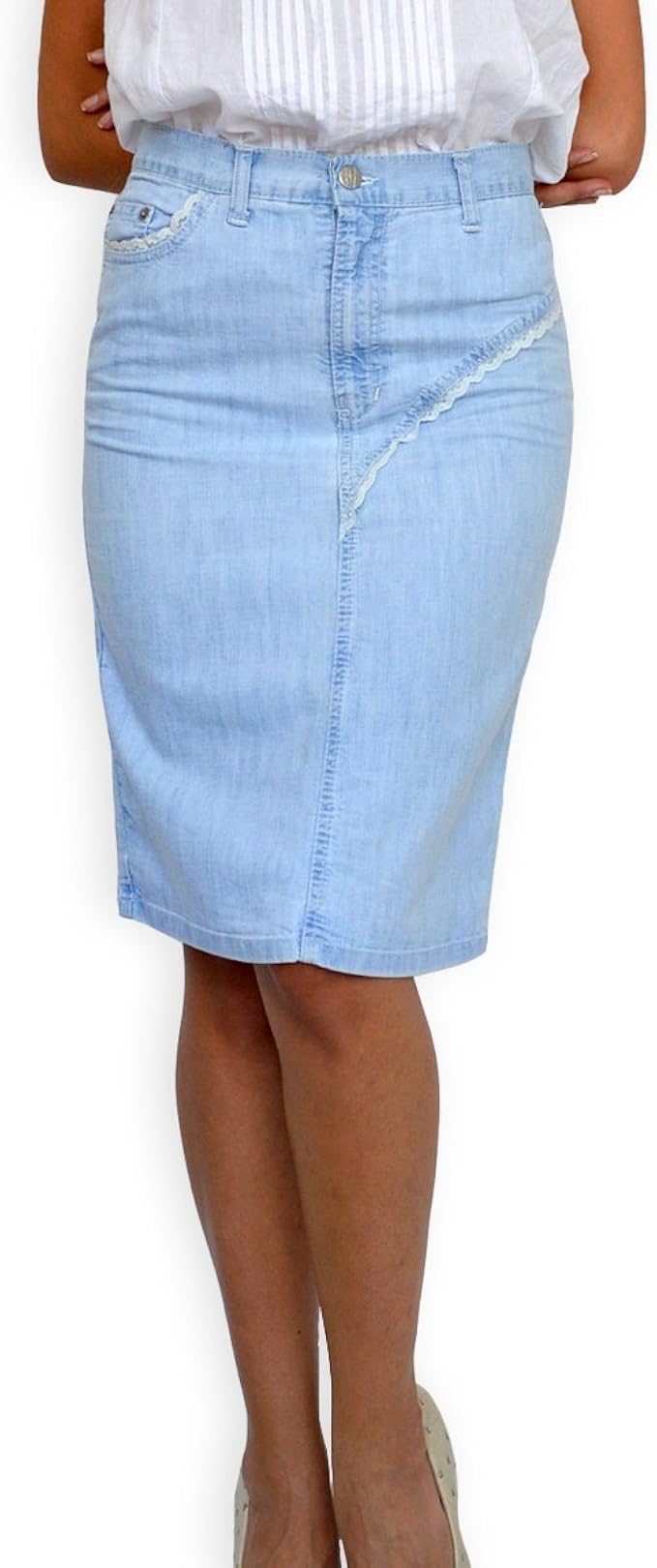 Damen Freizeit Rock Bleistift Boutique Knielang Hellblau Denim Jeans Grosse 36 38 40 42 44 46 48 50 Amazon De Bekleidung