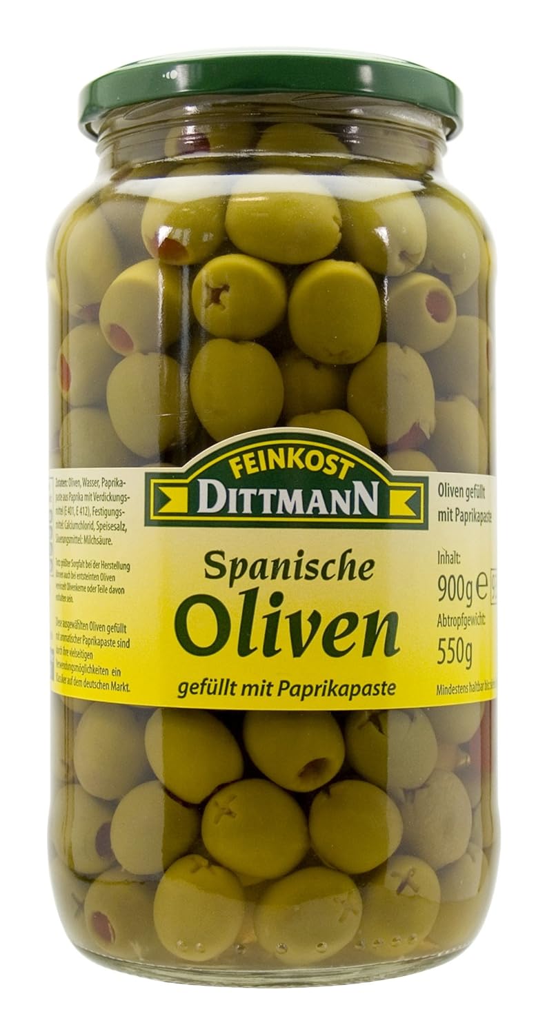 Feinkost Dittmann Spanische Grune Oliven Gefullt Mit Paprikapaste 550 G Amazon De Lebensmittel Getranke