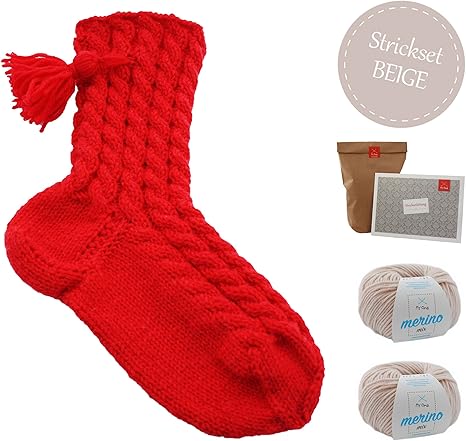 Myoma Strickset Weihnachten Diy Set Nikolaussocke Im Zopfmuster Beige Nikolausstrumpf Strickpackung Mit 2 Knauel Wolle Und Strickanleitung Weihnachtsdeko Stricken Amazon De Kuche Haushalt