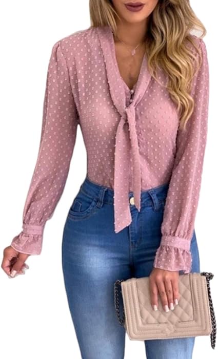 Damenmode Damen Durchsichtige Netz Punkte Bedruckt Bluse Freizeit Quaste Langarmlig T Top Kleidung Accessoires Kidzandkai Com