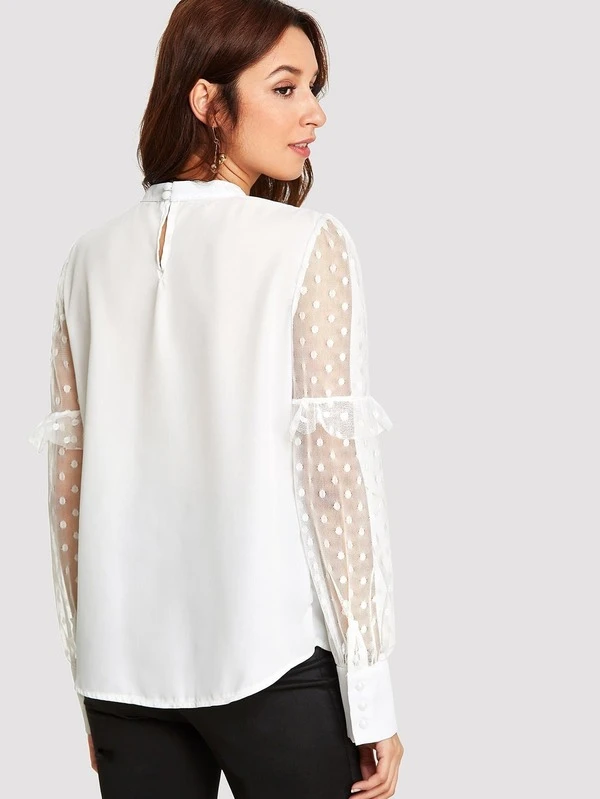 Bluse Mit Netzstoff Auf Den Armeln Und Punkte Aktuelle Trends Gunstig Kaufen Shein Deutschland